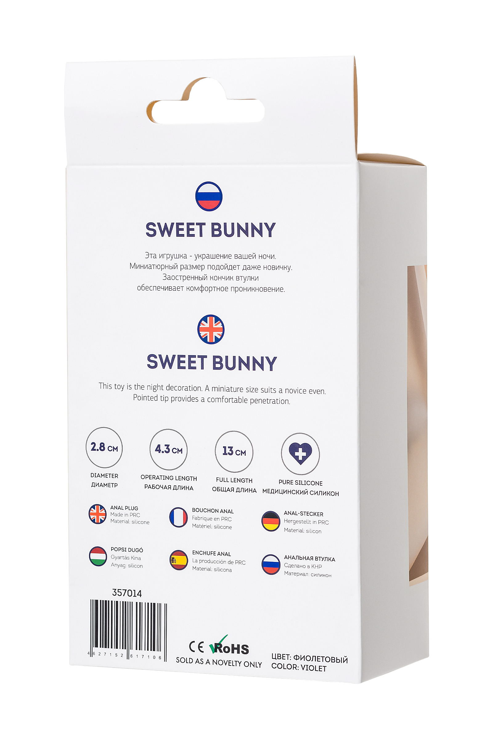 Sweet bunny Эта игрушка — украшение вашей ночи и повод для игры. Миниатюрный размер подойдет даже новичку. Заостренный кончик втулки обеспечивает комфортное проникновение.Рекомендуем использовать до и после применения - дезинфицирующее средство для игрушки, чтобы обеспечить длительное скольжение и комфорт интимных отношений, рекомендуем использовать смазку на водной основе.Хранить при температуре не выше 35 градусов, избегать попадания прямых солнечных лучей.