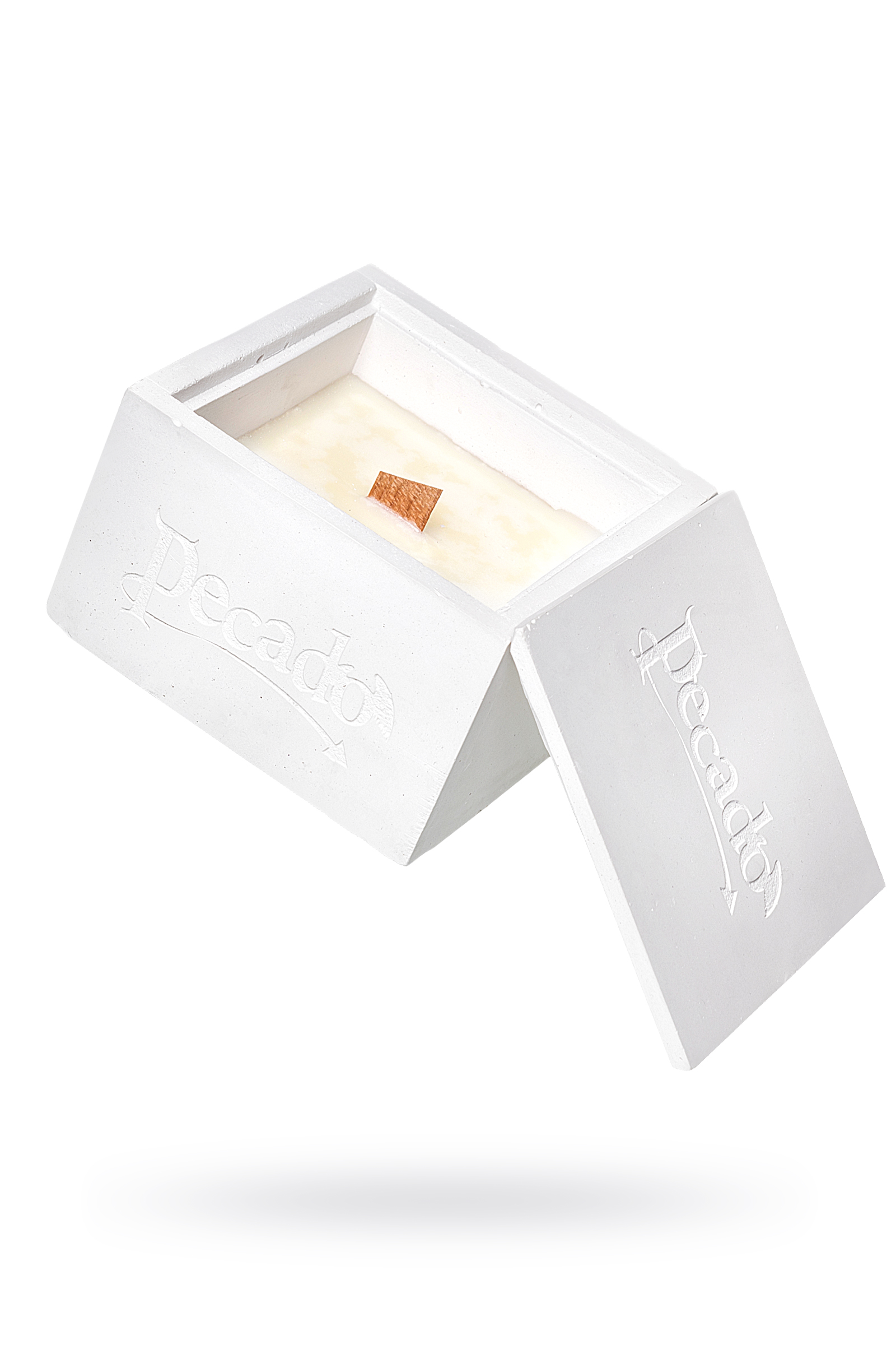 Соевый воск, парафин, натуральное ароматическое масло, деревянный фитиль. Коробочка изготовлена из скульптурного гипса.