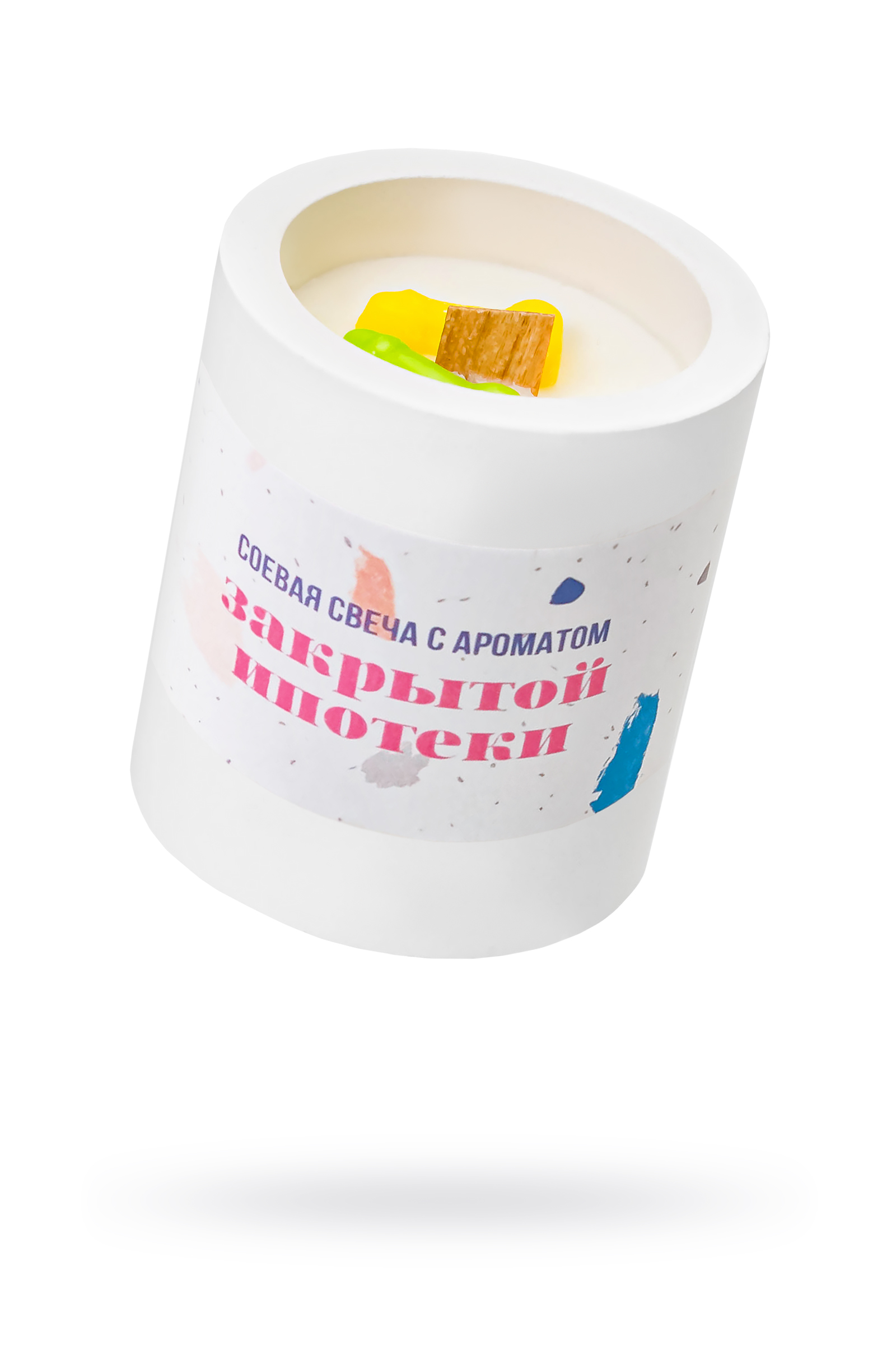 Соевый воск, ароматизатор, деревянный фитиль. Тара для свечи изготовлена из скульптурного гипса. Время горения - 35 часов.