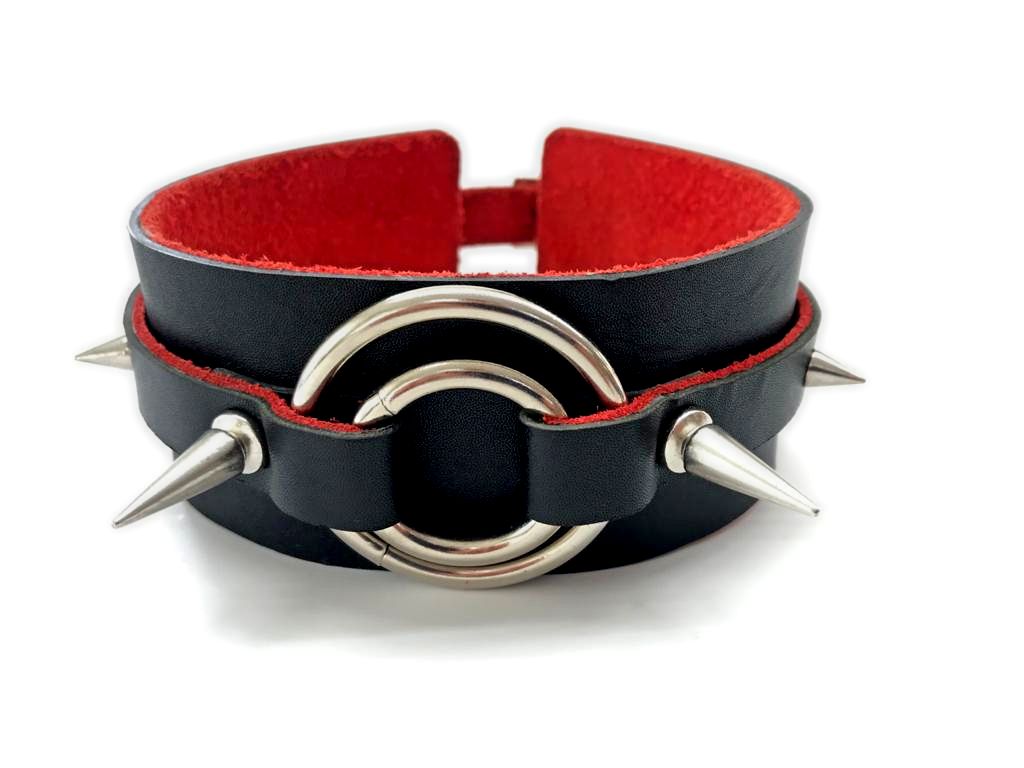 Широкий чокер БДСМ геймс Sheila B04R для доминации и ваших правил в игре с партнером. Шипы напомнят о вашей строгости, а кольца дополнят дизайн неповторимым силуэтом. Изготовлен из чёрной кожи с красным подкладом. Уникальный дизайн: два шипа, два кольца по центру Для ценителей и новичков БДСМ игр Литая полноценная фурнитура Регулируемый размер
