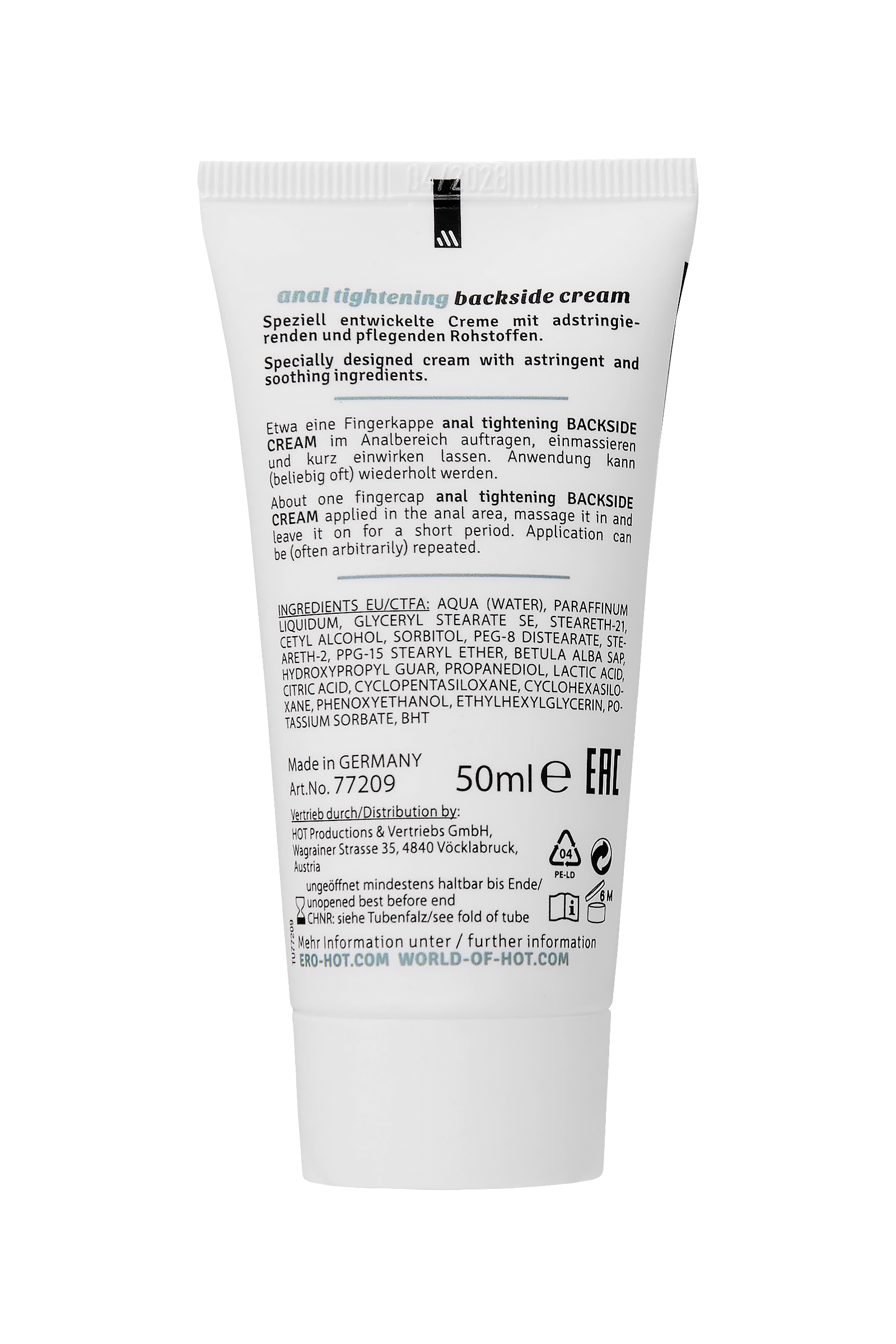 Интимный ухаживающий крем Тайтинг для анальной зоны от бренда ХОТ – это забота о вашей чувствительной коже. С его помощью вы обеспечите нежный уход и защиту от потенциальных травм и микротрещин. Уникальная формула, обогащенная соком белой березы, подарит вашей коже мягкость и приятное сужающее, вяжущее ощущение. Активные компоненты способствуют новым ярким ощущениям во время анальных ласк. Нанесите небольшое количество крема на анальное отверстие. Легкими массирующими движениями втирайте до полного впитывания. Этот крем разработан с учетом самых нежных потребностей кожи ануса. Послеинтимная область требует деликатного ухода, использование крема поможет уменьшить риск микротравм. Благодаря смягчающему эффекту сока белой березы, Тайтинг способствует ощущению комфорта и защите, что особенно важно в этой чувствительной области.