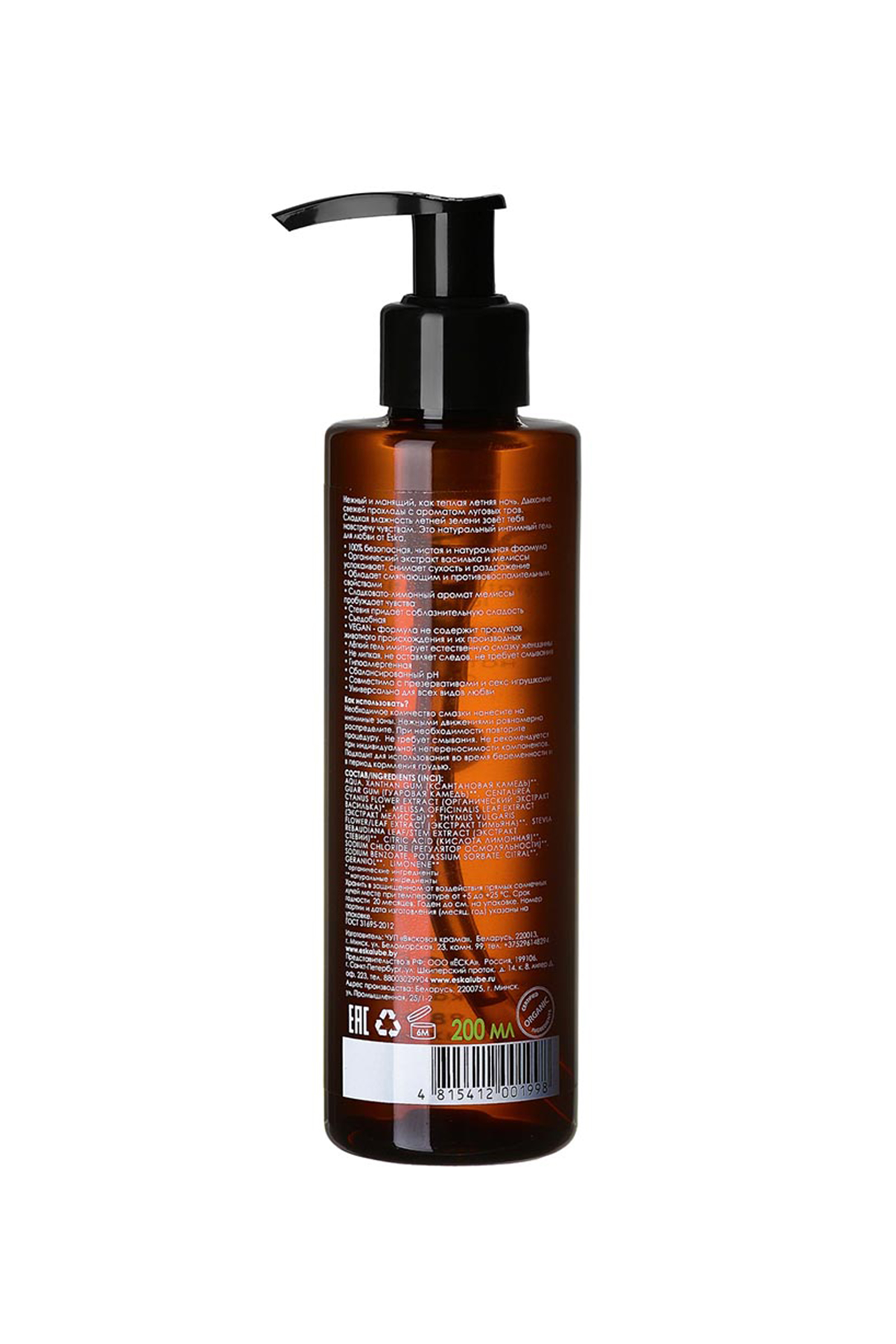 Попробуй вкус летней ночи с лубрикантом от бренда Ёска! Манящий и нежный, как теплая летняя ночь. Дыхание свежей прохлады с ароматом луговых трав. Сладкая влажность летней зелени зовет тебя на встречу новым чувствам. Это натуральный лубрикант для любви от Ёska. • 100% безопасная, чистая и натуральная формула. • Органический экстракт василька и мелиссы успокаивает, снимает сухость и раздражение. Обладает смягчающим и противовоспалительными свойствами. • Сладковато-лимонный аромат мелиссы пробуждает чувства. • Съедобная! • Стевия придает соблазнительную сладость. • VEGAN - формула не содержит ингредиентов животного происхождения или их производных. • Лёгкий гель имитирует естественную смазку женщины. • Не липкая, не оставляет следов, не требует смывания. • Гипоаллергенная. • Сбалансированный pH, 4,3. • Совместима с презервативами и секс-игрушками. • Универсальна для всех видов любви. Подходит для орального, вагинального и анального секса. Как использовать? Необходимое количество смазки нанесите на интимные зоны. Нежными движениями равномерно распределите. При необходимости повторите процедуру. Не требует смывания. Не рекомендуется при индивидуальной непереносимости компонентов. Подходит для использования во время беременности и в период кормления грудью. Состав Ёska Летняя ночь - лубрикант на водной основе: • Ксантановая камедь широко используется в пищевой продукции. Натуральный, безопасный, экологически чистый гелеобразователь. Не позволяет влаге испаряться. В смазке для получения прозрачной, шелковистой текстуры. Не раздражает даже чувствительную кожу. • Гуаровая камедь - натуральный загуститель, обладает увлажняющим и влагоудерживающим свойством. Получают камедь из семян растения гуар, известного также, как гороховое дерево. • Органический экстракт василька мягко действует на слизистую, успокаивает, снимает воспаление и раздражение. Наполняет сухую слизистую влагой. Дубильные вещества, содержащиеся в цветках, помогают бороться с инфекциями и бактериями. Подходит для чувствительной кожи. • Экстракт мелиссы успокаивает нежные ткани, отлично снимает зуд, раздражение и сухость. Оказывает противовоспалительное действие, заживляет и стимулирует кровообращение. Богат флавонойдами, которые обладают антиоксидантными свойствами. Придает смазке яркий травянисто-лимонный аромат, пробуждающий воспоминания о теплой летней ночи. • Экстракт тимьяна обладает выраженной противогрибковой и антимикробной активностью. Известен своим ранозаживляющим, противовоспалительным и антиоксидантным действием. Применяется в борьбе с вагинальными инфекциями. Оказывает местный обезболивающий эффект, снимает раздражение. • Экстракт стевии природный подсластитель. 0% калорий и 100% натуральный, абсолютно безопасный способ подсластить вашу жизнь. В отличии от сахара, стевия не является питательной средой для бактерий и грибков. Обладает противомикробным, ранозаживляющим и противовоспалительным действием. Она содержит в себе мощную комбинацию антиоксидантов, включая витамин С, витамин Е, флавоноиды, калий, кальций, железо, магний, цинк и фолат, которые благоприятно действуют на весь организм в целом. • Лимонная кислота помогает поддерживать оптимальный уровень рН, является естественным консервантом. • Хлорид натрия – регулятор