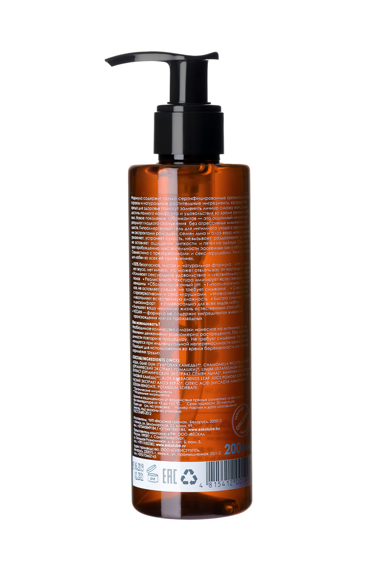 Новое поколение лубрикантов От бренда Ёска — это ощутимый мгновенный результат гладкого скольжения без агрессивных химических веществ. Гипоаллергенная гель-смазка с органическими экстрактами ромашки, семян льна и алоэ вера, максимально увлажняет, устраняет сухость, не вызывает раздражения и жжения, не оставляет ощущения липкости и пятен на одежде. Способствует пробуждению чувствительности эрогенных зон у обоих полов. Совместима с презервативами и секс-игрушками. Универсальна для любви во всех её проявлениях. • 100% безопасная, чистая и натуральная формула • Нет запаха, нет вкуса, нет ничего, что может отвлечь вас от настоящих чувств • Усиливает сексуальное удовольствие и чувствительность у обоих полов • Реалистичная текстура имитирует естественную смазку женщины • Не липкая, не оставляет следов, не требует смывания • Совместима с презервативами и секс-игрушками • Интенсивно увлажняет и восполняет естественную влажность • Быстро снимает сухость и дискомфорт • Сбалансированный pH • Гипоаллергенная • Универсальна для всех.