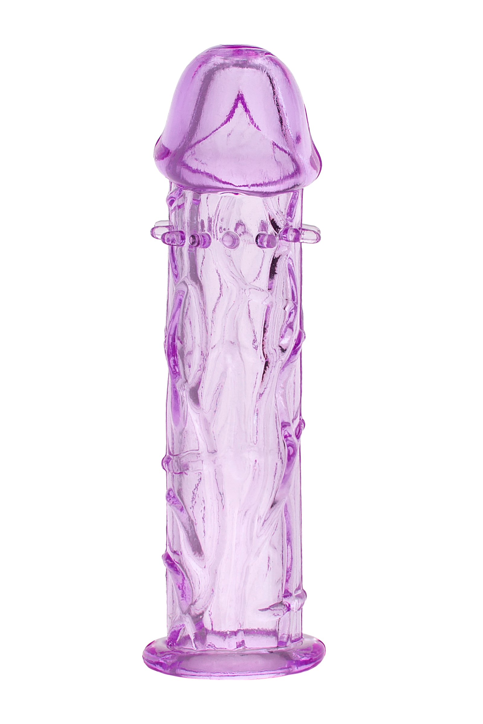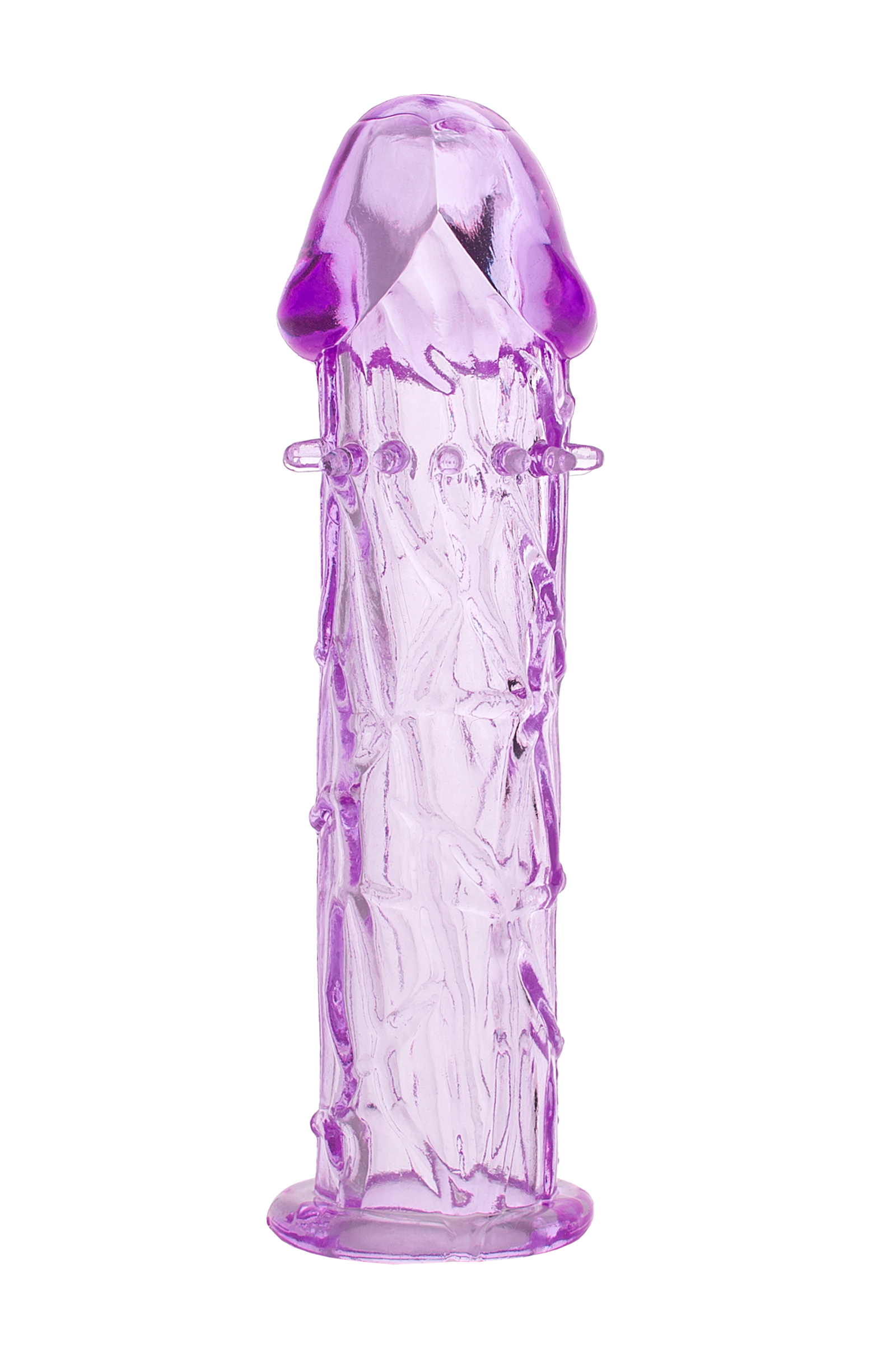Прозрачная фиолетовая насадка из эластичного геля, прекрасно тянется - обеспечит чувственные ощущения для женщины, и увеличит размер полового члена у мужчины. Длина насадки составляет 12,5 см., внутренний диаметр в не растянутом состоянии 2 см. Благодаря имеющимся на поверхности насадки шипикам, стенки влагалища будут получать дополнительную стимуляцию.