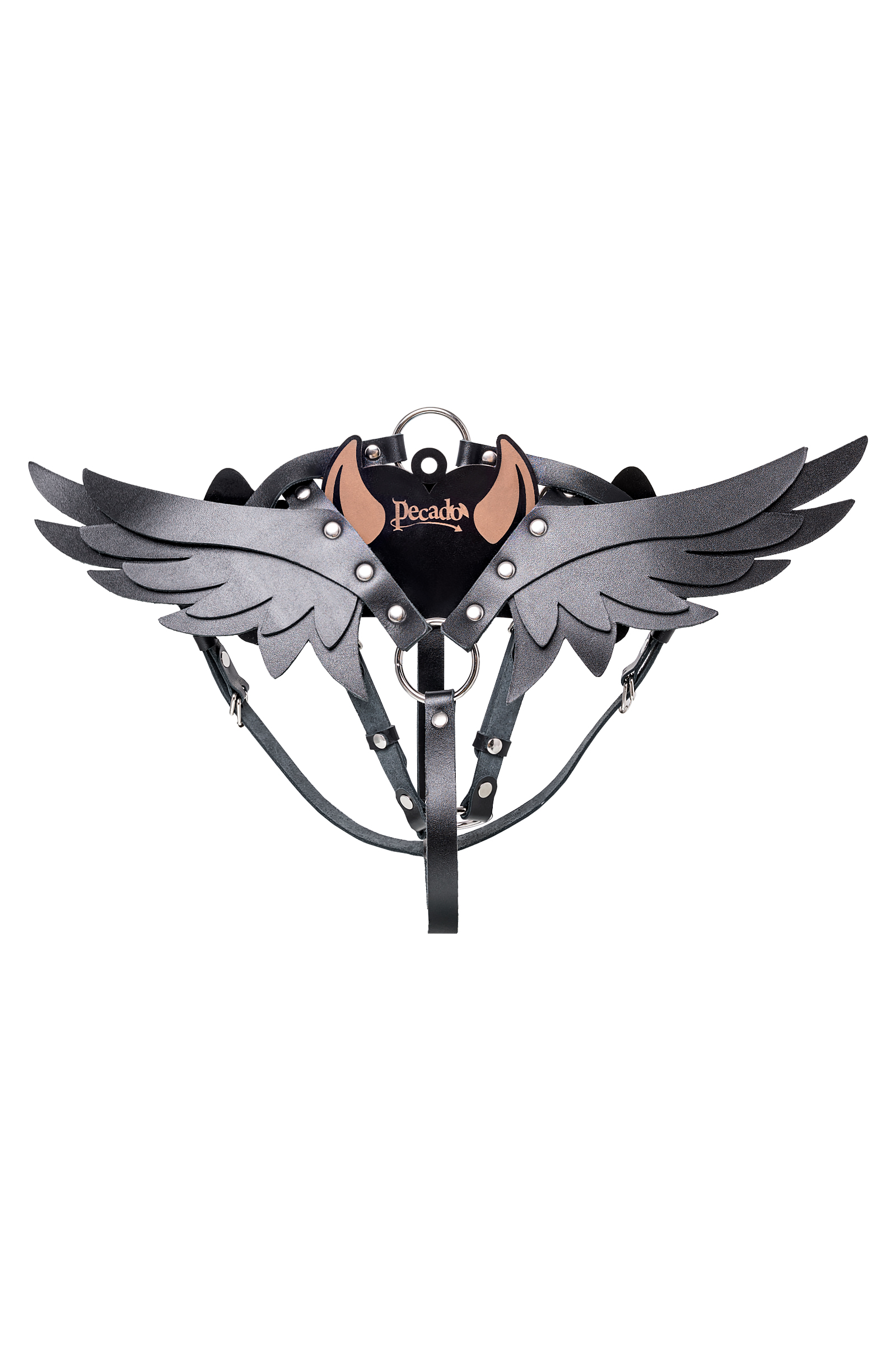Изящная портупея с сексуальными крылышками от Pecado создана для всех любителей властвовать и подчиняться. Девайс для ролевых игр изготовлен полностью из натуральной черной кожи. Портупея тактильно приятная, плотно прилегает и комфортно сидит на теле. Благодаря использованию экологичного материала ремешки не тянутся и не деформируются. Аксессуар декорирован металлической фурнитурой высокого качества. Надежная пряжка комфортно регулирует портупею под необходимый размер. А оригинальные крылышки придают дерзкий настрой атрибуту. Подходит для ношения как на голое тело, так и поверх нижнего белья. Только для тех, кто любить серьезные игры для взрослых. ● 100% натуральная кожа. ● Ручная работа. ● Износостойкий, тактильно приятный материал ● Надежная высококачественная фурнитура. ● Элементы портупеи несъемные.