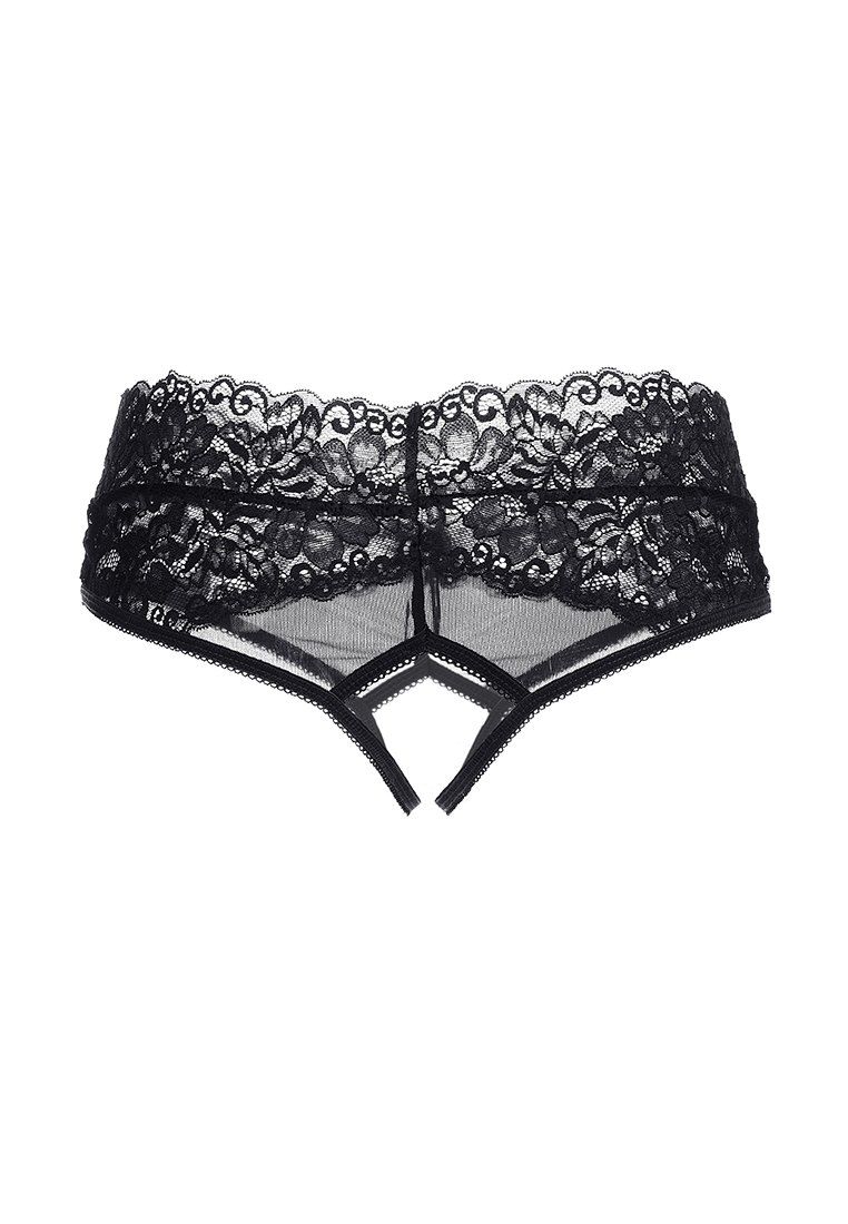 Эротические трусики кружевные со вставкой эластичной сетки, спереди декорированы атласным бантиком. Свободный кружевной край на линии талии. Допускается замена кружева на аналогичное.