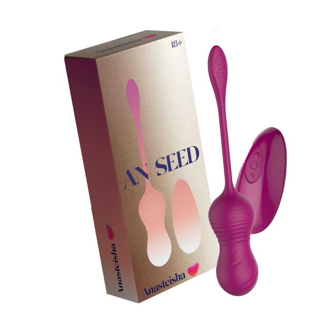 AN Seed- вагинальные виброшарики с двумя отдельно работающими моторами. Верхняя часть шариков имеет 7 режимов невероятного массажа бусинами, а нижняя часть 10 режимов интенсивной и глубокой вибрации. Моторы могут работать как вместе, так и по раздельности. Пульт дистанционного управления позволяет наслаждаться игрушкой в любом месте, а также передавать управление партнеру. Пульт работает на расстоянии до 15 метров. Игрушка идеально подойдет как для удовольствия, так и для укрепления мышц тазового дна. Применение Виброшарики идеально подойдут как для внешней, так и для внутренней стимуляции. Их можно использовать как самостоятельно, так и в паре, передав управление партнеру. Вибромассажер выполнен из мягкого силикона премиального качества. Для комфортности введения, рекомендуется использовать лубрикант на водной основе, а с помощью силиконовой веревки, игрушку удобно извлекать после использования. Игрушка включается с помощью трехсекундного нажатия на кнопку, которая расположена внизу силиконовой веревки. Включение, выключение, а также управление может осуществляться с помощью пульта дистанционного управления. Рекомендуем использовать до и после применения - дезинфицирующее средство для игрушки чтобы обеспечить длительное скольжение и комфорт интимных отношений, рекомендуем использовать смазку на водной основе. Хранить при температуре не выше 35 градусов, избегать попадания прямых солнечных лучей. Перед хранением необходимо хорошо просушить Материал: Силикон, АБС-пластик Функционал: 7 режимов массажа бусинами+ 10 режимов вибрации Размер: 9,5 х 3,5 х 3,5 см. Уровень защиты: IPX7 Батарейки: USB Время зарядки: 180 мин. Время работы на самой высокой мощности: 60 мин. Пульт дистанционного управления Материал: АБС-пластик (с покрытием из полиуретана), силикон. Размеры: 8,5 х 4 х 2,2 см.